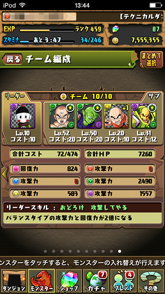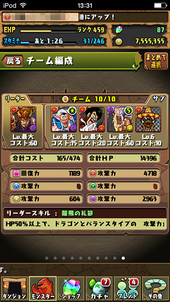 ドラゴン&バランスで編成