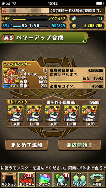 石5個を使用して...ρ(・ω`・*) ポチポチ